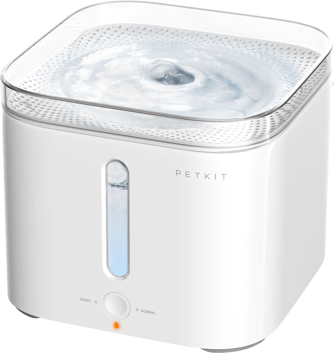 The PETKIT Eversweet Dog and Cat Smart Waterer features a 3-stage carbon filtration system which filters out and helps completely eliminate or screen any and all harmful chemicals and impurities found in contaminated or unfiltered water. Internally each carbon filter features mesh screens with activated carbon and Ion-Exchange Resins. The device also features a filter-change reminder and will flash on the front of the device further reminding users when the filter unit needs to be changed. Furthermore, the Eversweet features an LED Blue Light reminder which automatically lights up once water thresholds dip below certain levels reminding users to re-fill. The water levels can also be viewed through the built-in see-through acrylic chamber. The Eversweet is designed and engineered to remove any noises due to splashing as the infinity-flow concept guides the water flow through perforated holes that allow users to enjoy an ultra-silent experience in combination with the mini yet powerful built-in water pump. The Eversweet also features both 'Smart' and 'Normal' mode functions. The smart function automatically turns off when not in use saving energy. Normal mode allows users to have the option of allowing the device to continuously flow water. Additionally, this device features anti-skid grips located at the bottom of the device. The device also features an easy-fill removable lid for quick water-refill. The Eversweet comes with 1 Eversweet Fountain, 1 filter unit and a 12V adapter unit. Additional filter replacement units are sold separately. Holds approximately 2 Liters of water.