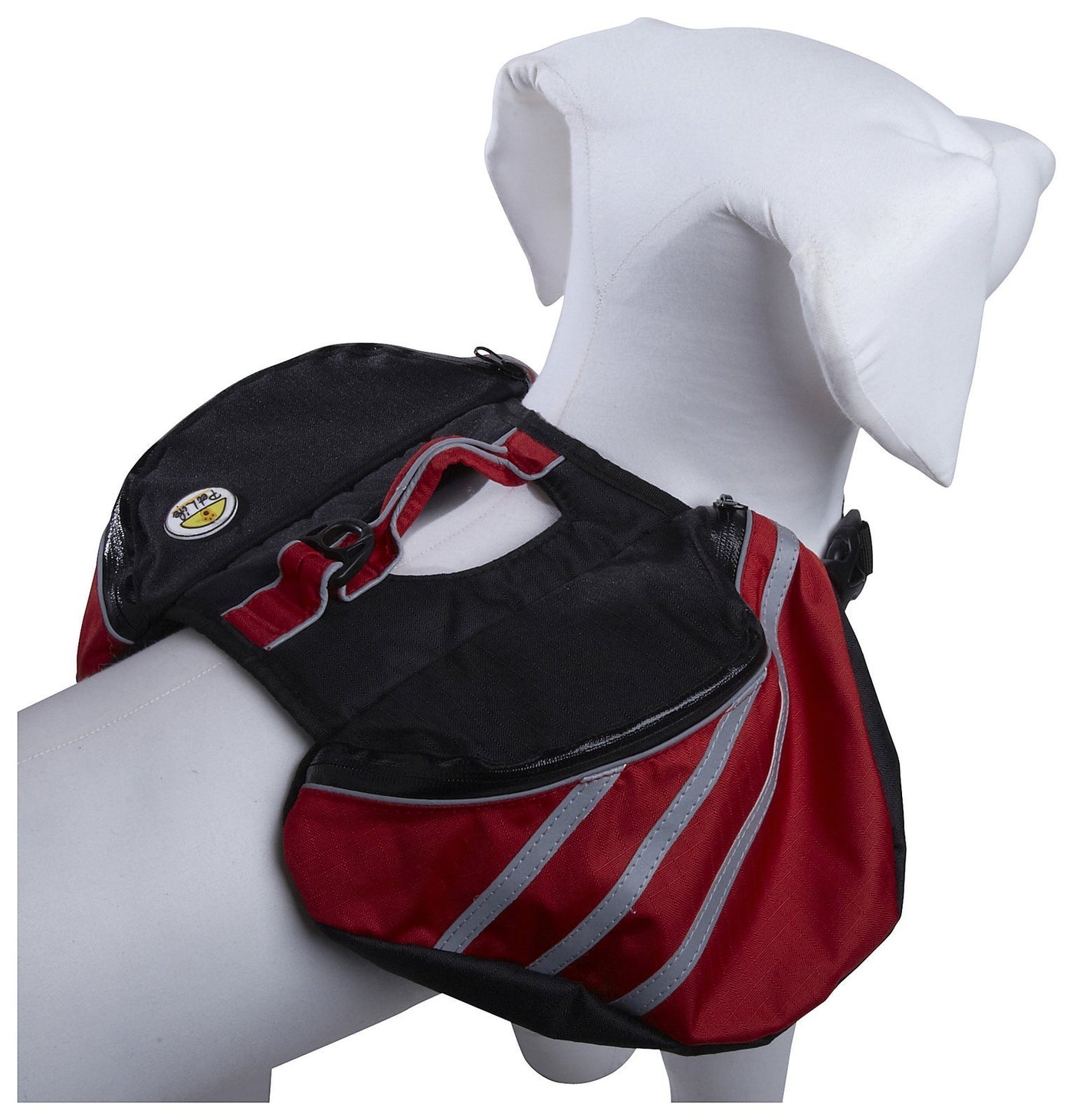 The Pet Life EVEREST Backpack features authentic seat belt material straps and a DUPONT Heavy Duty Buckle to secure weight and Adjusts at the belly accordingly. Features a waterproof interior and zipper to seal off any and all liquids. The reflective strips on both sides are an important SAFETY component. Outer lined with high quality and breathable Mesh fabric where it gently hugs your pets body. Lightweight and Durable. The Zippered Pocket features room for any essentials. The Everest Backpack is also a Harness and features a Harness Ring that can attach to any Leash.