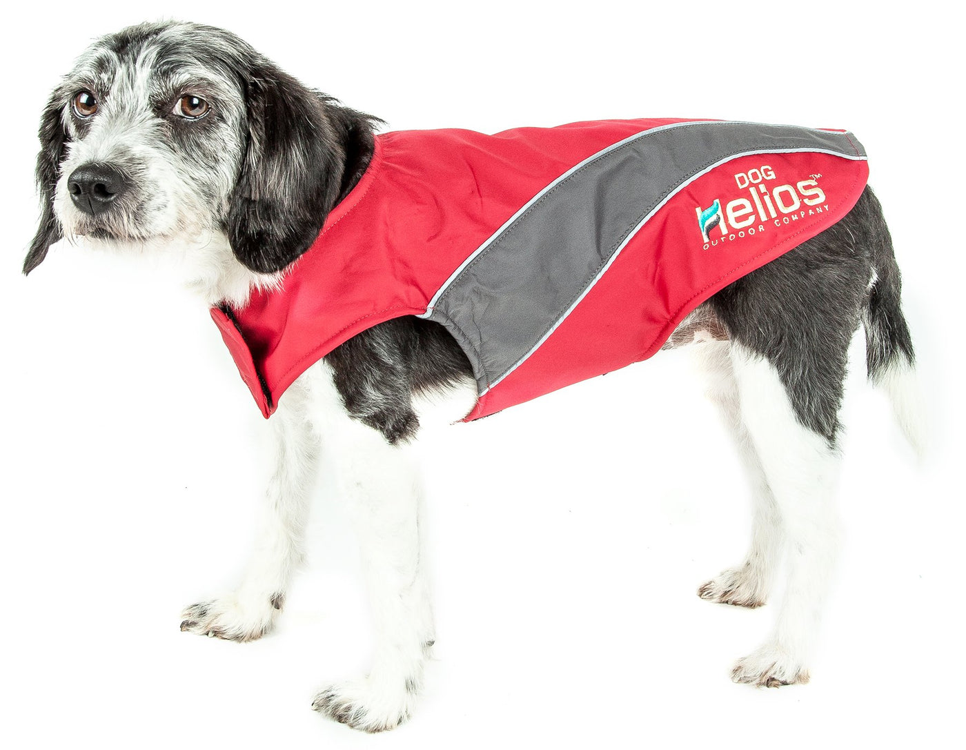 The Helios Octane Softshell Neoprene Satin Reflective Dog Jacket is Inner-lined with exclusively developed Blackshark Technology, this innovative fabric is Lightweight, Waterproof, Windproof, Snow proof, Breathable, Cold-Repellent, Impermeable and Tear Resistant. Features a Waterproof coated Neoprene-Satin Outer shell that with high elastic properties. Additionally the outer shell is 3M Reflective for added safety during night strolls. Great for the high-octane dog. The Interior is composed at Anti-Static thick Polar Fleece for added comfortability and breathability. Features dual Velcro straps for convenient on/off access. This Dog Coat also features accented Embroidery and a print on the Outer shell. Get Outdoors with Helios Dog! Available in Multiple Colors and Sizes.