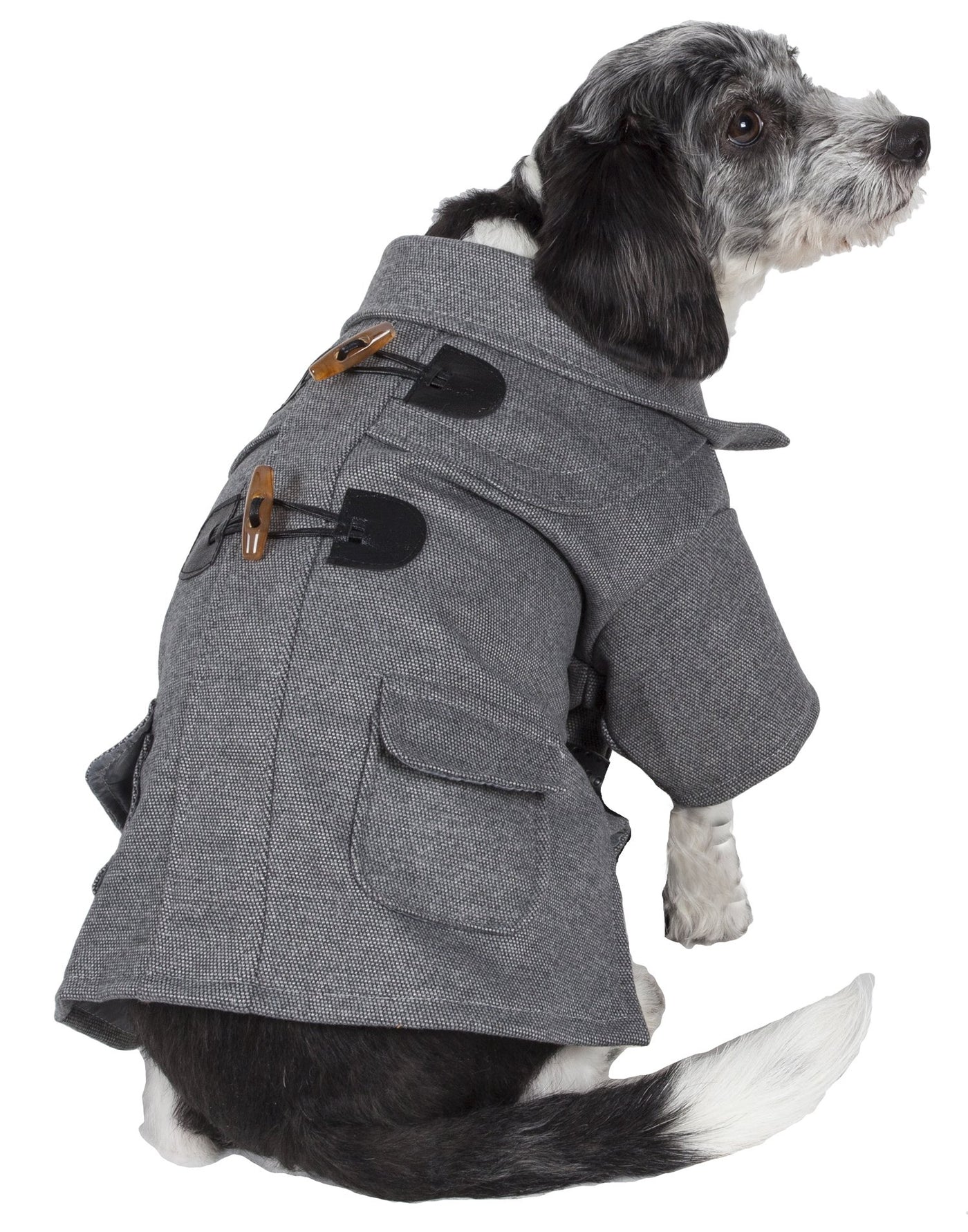 The Pet Life Sargeant Riveted Fashion Collared Wool Dog Coat is composed of 100% cotton wool and features accented rivet details along the backside with a dual back-pocket. This pet coat also features snap button closure by the belly for easy on/off access and a leash slit holder behind the neck area. Available in multiple sizes.