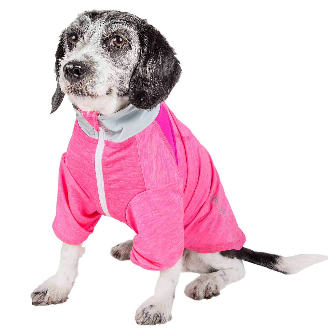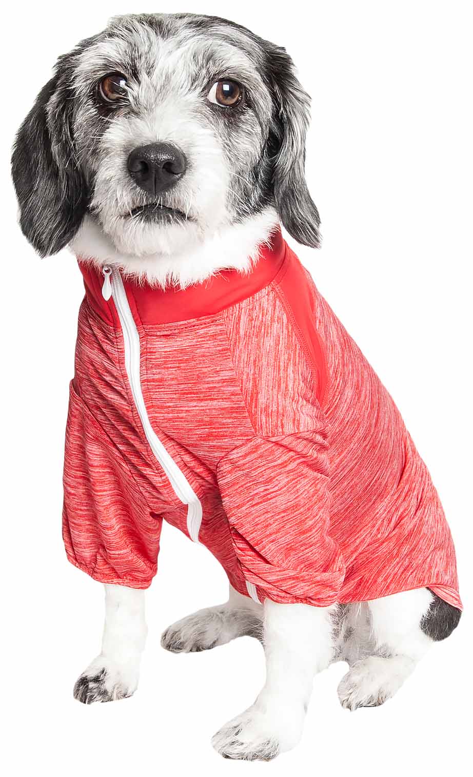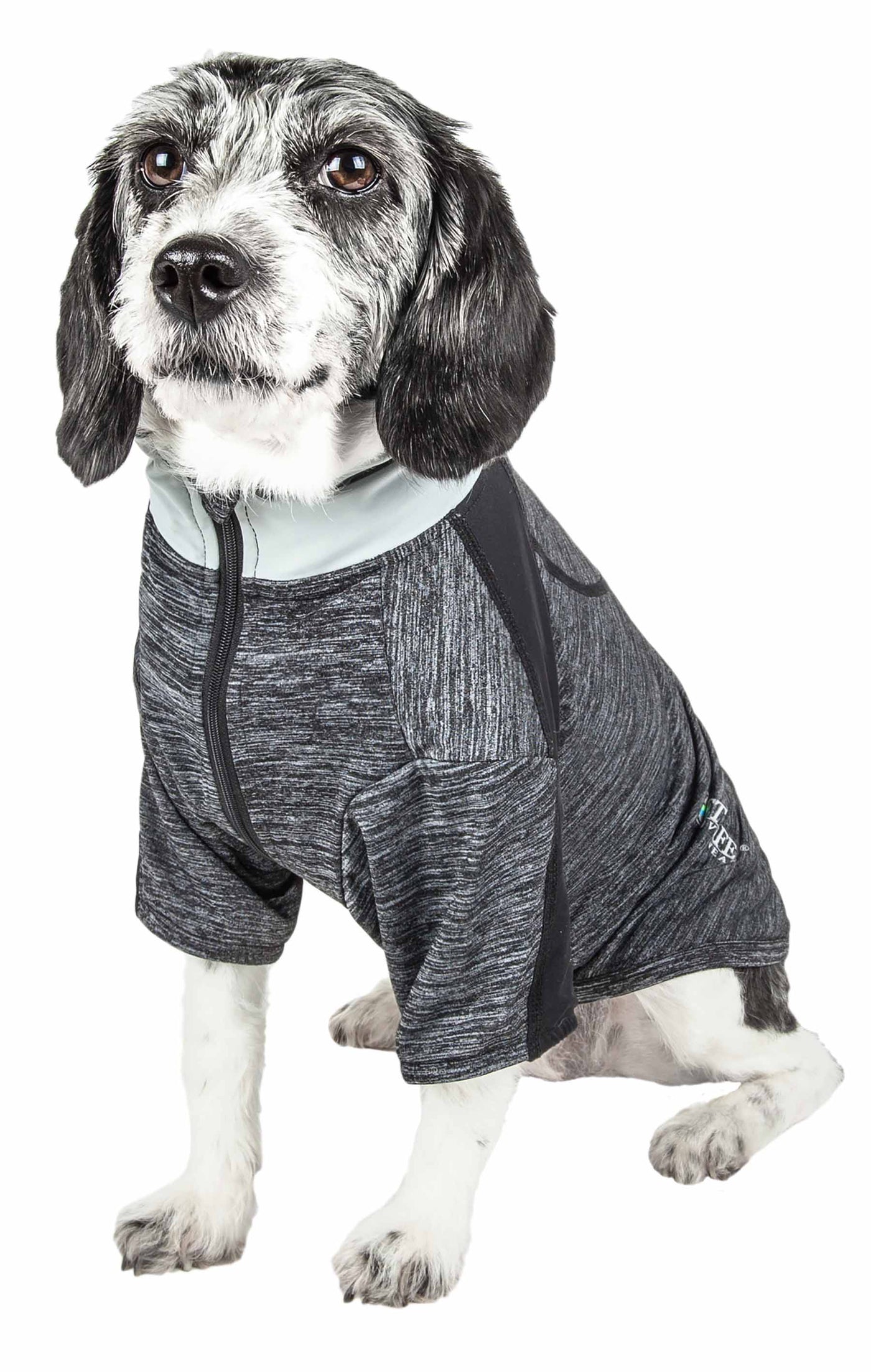 The Pet Life ACTIVE 'Chewitt Wagassy' Heathered Triple-Toned Long Sleeve Performance T-shirt features specially engineered Stretchy fabric that are Lightweight and Permeable resulting in a well Ventilated system that is specially developed to maximize Mobility and Breathability. Features 4-Way Stretch Technology that moves better in every direction with a customized relaxed fit without the squeeze and won't bunch up. The side of the body and arms feature a lighter blend of fabric for strategic ventilation. Features Quick-Drying properties that dries extremely fast while offering Anti-Odor technology that prevents odor causing microbes. The Chewitt-Wagassy Long Sleeve T-shirt is also UV Protectant against the suns harmful rays and fitted perfectly to help assist in containment or collection of shedded hairs. Design features Dual Reinforced stitching at every seam for durability with a convenient zippered design with protective zipper flaps preventing the pet's hairs from getting caught within the zipper tracks. Additionally this T features Reflective Taping for added night visibility and a Leash Slit along the back. Macine Washable. This style is part of our Pet Life Activewear Collection. Available in Multiple Sizes and Colors.