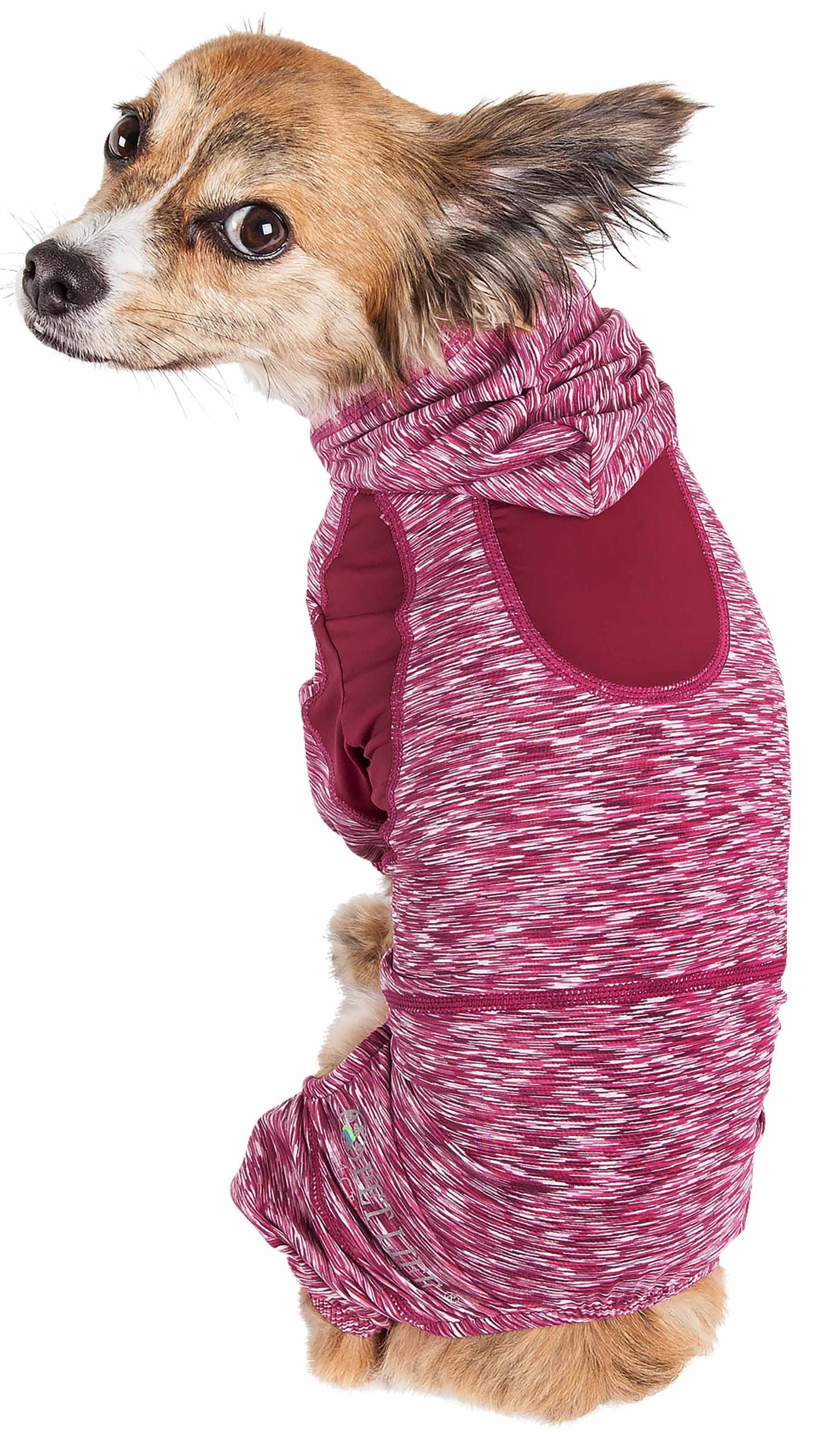 The Pet Life ACTIVE 'Downward Dog' Full Bodied Hoodie is an equipped Performance system that maintains year-round body temperature while providing complete flexibility. This Yoga-inspired material features dual Lightweight Micro-Treated Quick-Drying Fabrics that dry really fast that repels perspiration while offering Anti-Odor technology that assists with odor causing microbes. Features 4-way Stretch construction that move better in every direction for great Mobility and is extremely Lightweight and elastic that feels almost like a second-skin. Additionally this Hoodie features strategically mapped ventilation points for added Breathability. Features a tapered expandable fit with stretch-banded lining that expands for increased growth room. Offers UV Protection against the suns harmful rays and fitted nicely around the body to help assist in containment or collection of shedded hairs. Design features Dual Reinforced stitching at every seam for Durability and a leash-slit along the backside, a pull-over hood and a zipper underneath for convenient on and off access with Reflective Taping for added night visibility. Machine Washable. This style is part of our Pet Life Activewear Collection. Available in Multiple Sizes and Colors.