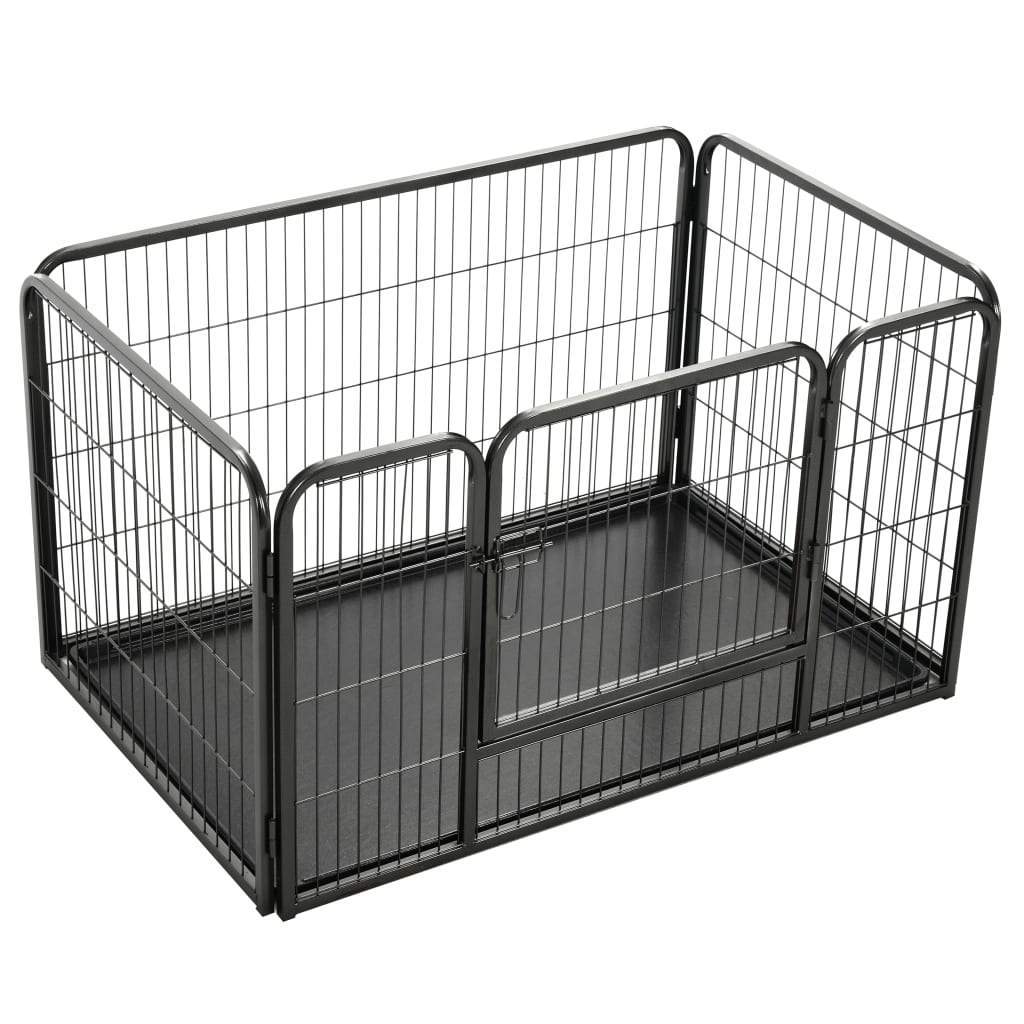 Our versatile playpen is ideal for your puppies to play, exercise, train, or simply to keeping them safe. It can be easily set up or taken down. It features a hinged door with a security latch for easy access. This durable and weather-resistant playpen is made of rustproof powder-coated steel, making it suitable for outdoor and indoor use. A plastic bottom tray is also included in the delivery.