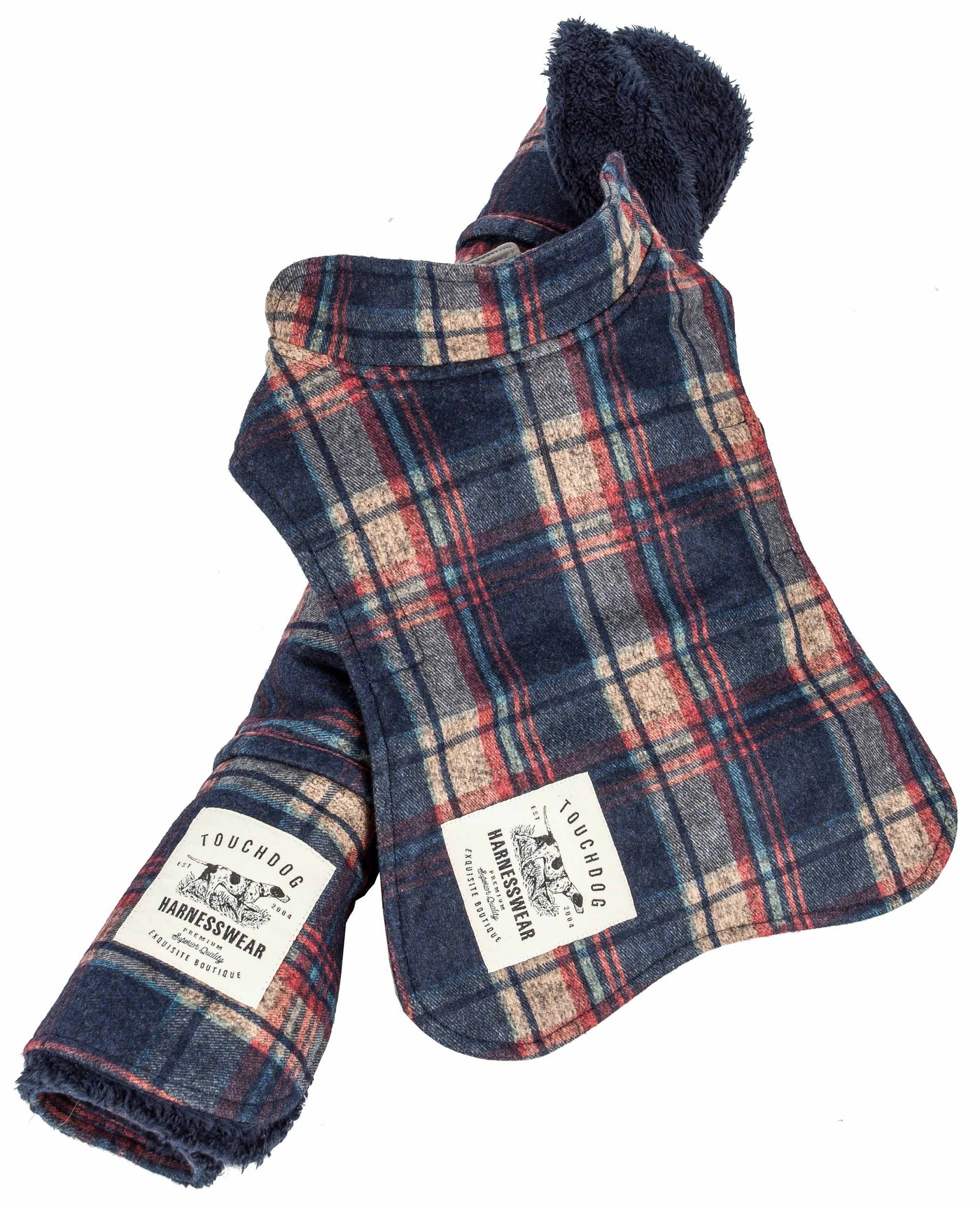 Touchdog 2-In-1 Tartan Plaided Dog Jacket With Matching Reversible Dog Mat