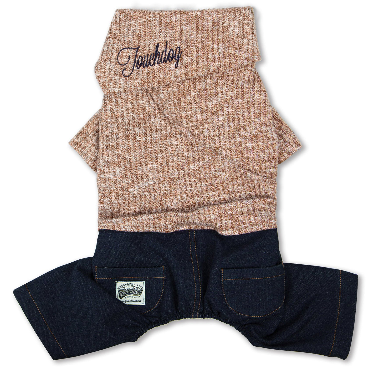 The Touchdog Vogue Neck-Wrap Sweater and Denim Pant Outfit is a 1 Piece outfit stitched together. This Full-body Dog Sweater is well crafted with a fashion-forward ribbed collar overlay that looks ultra-modern and trendy and comes together nicely with our Denim pant. The sweater is nice and breathable and features dual accented pockets along the backside and elastic conformed tubing throughout the length of the body that adds room for growth and provides a more tailored fit. Has a nice and comfortable stretch and feel throughout the outfit and completed with our embroiderery along the back and pockets. Available in Multiple Sizes and Colors.